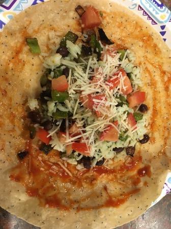 Son’s dish : Fresh spinach cooked with sauteed tomato & exotic spices and feta cheese sprinkled over. Spread on whole grain tortillas. Served with greek yogurt 🙂
